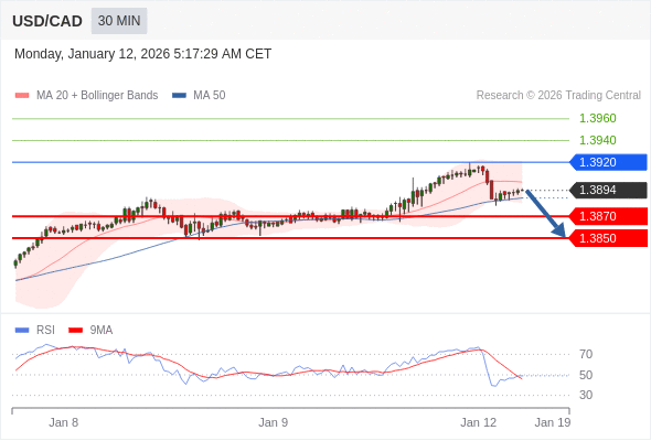 美元/加元 当日内: 期待1.3870。