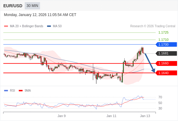 交易策略: 在 1.1700 之下,看跌,目标价位为 1.1660 ,然后为 1.1640 。