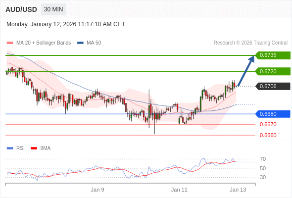 在 0.6680 之上,看涨,目标价位为 0.6720 ,然后为 0.6735 。