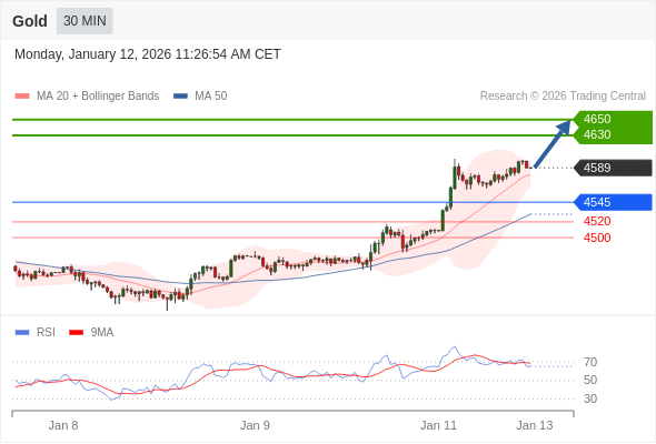 在 4545 之上,看涨,目标价位为 4630 ,然后为 4650 。