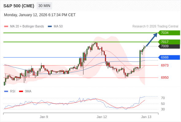 在 6988 之上,看涨,目标价位为 7017 ,然后为 7034 。