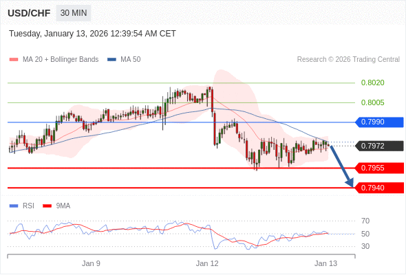 在 0.7990 之下,看跌,目标价位为 0.7955 ,然后为 0.7940 。