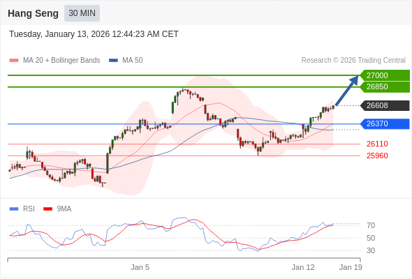 在 26370 之上,看涨,目标价位为 26850 ,然后为 27000 。