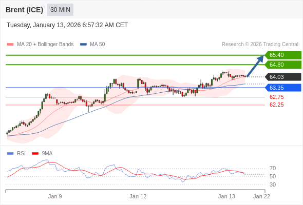 在 63.35 之上,看涨,目标价位为 64.80 ,然后为 65.40 。