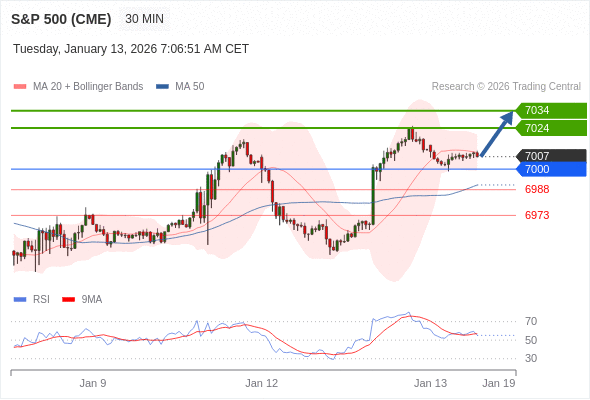 在 7000 之上,看涨,目标价位为 7024 ,然后为 7034 。
