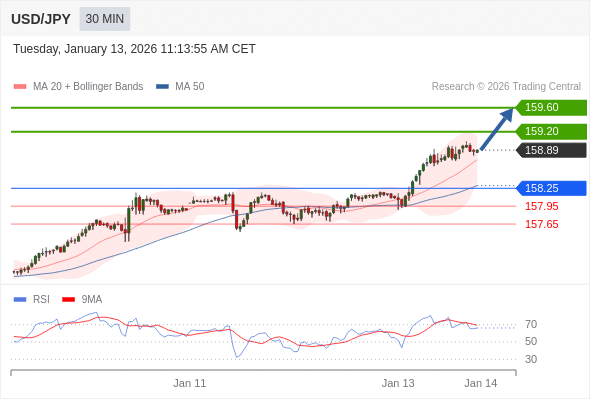 在 158.25 之上,看涨,目标价位为 159.20 ,然后为 159.60 。