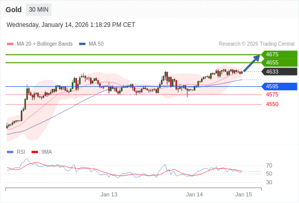 在 4595 之上,看涨,目标价位为 4655 ,然后为 4675 。