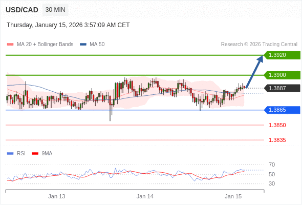 在 1.3865 之上,看涨,目标价位为 1.3900 ,然后为 1.3920 。