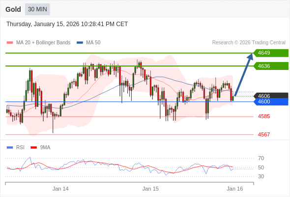 交易策略: 在 4600 之上,看涨,目标价位为 4636 ,然后为 4649 。