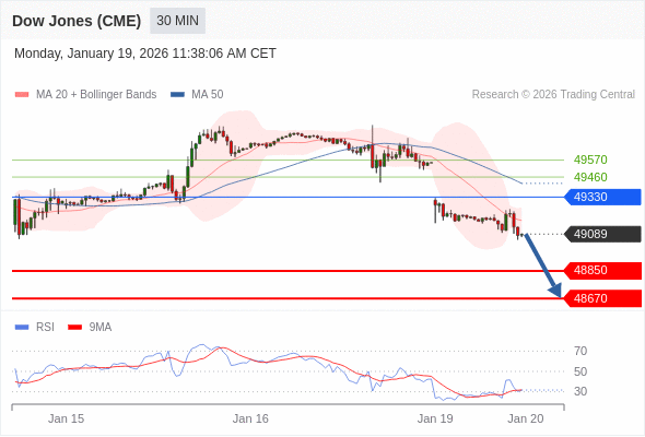 在 49330 之下,看跌,目标价位为 48850 ,然后为 48670 。