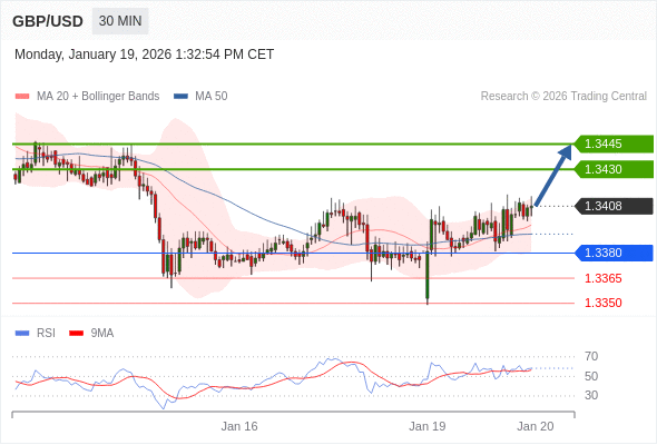 在 1.3380 之上,看涨,目标价位为 1.3430 ,然后为 1.3445 。