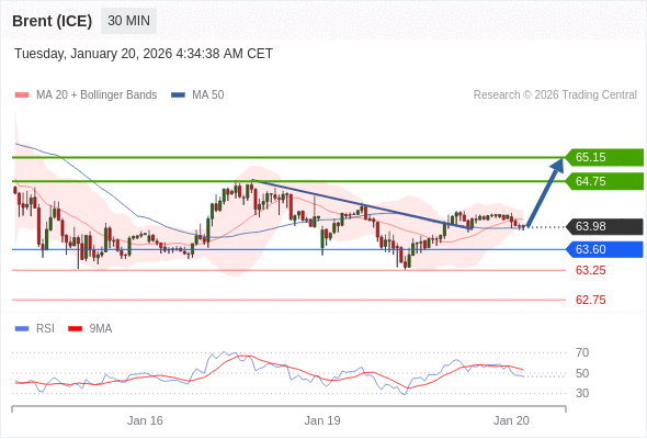 在 63.60 之上,看涨,目标价位为 64.75 ,然后为 65.15 。