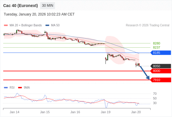 法国CAC指数期货 (Euronext) (G6) 当日内: 目标位为8000。