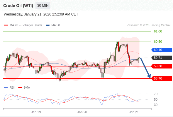 交易策略: 在 60.10 之下,看跌,目标价位为 59.30 ,然后为 58.70 。