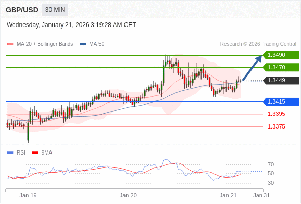 在 1.3415 之上,看涨,目标价位为 1.3470 ,然后为 1.3490 。