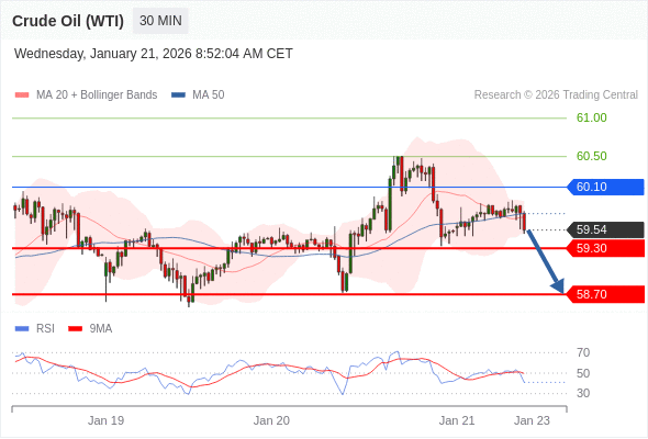 交易策略: 在 60.10 之下,看跌,目标价位为 59.30 ,然后为 58.70 。
