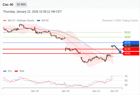 Cac 40 当日内: 谨慎操作。