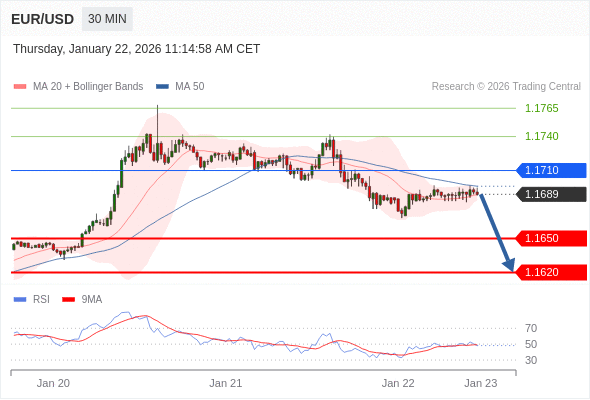 交易策略: 在 1.1710 之下,看跌,目标价位为 1.1650 ,然后为 1.1620 。