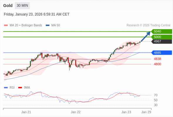 在 4885 之上,看涨,目标价位为 5000 ,然后为 5040 。
