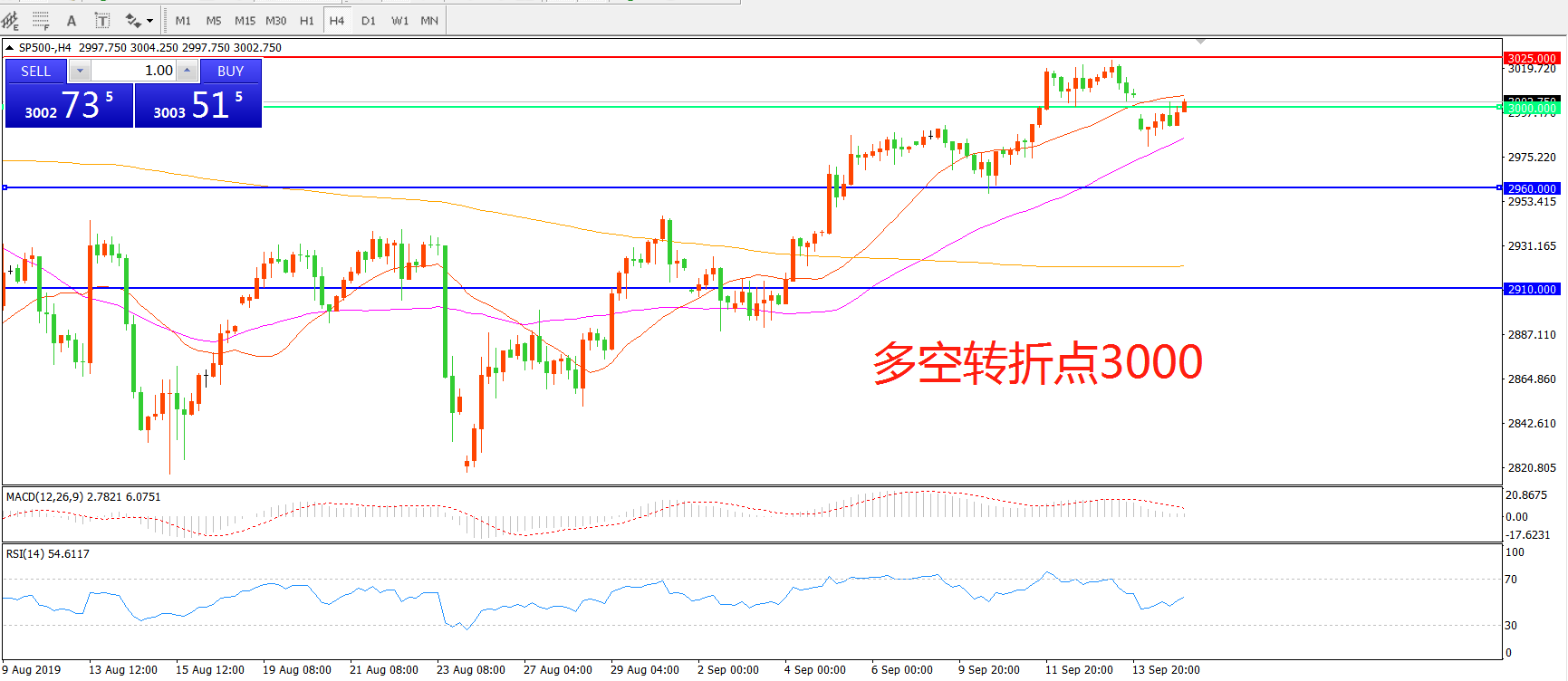 多空转折点:3000.00