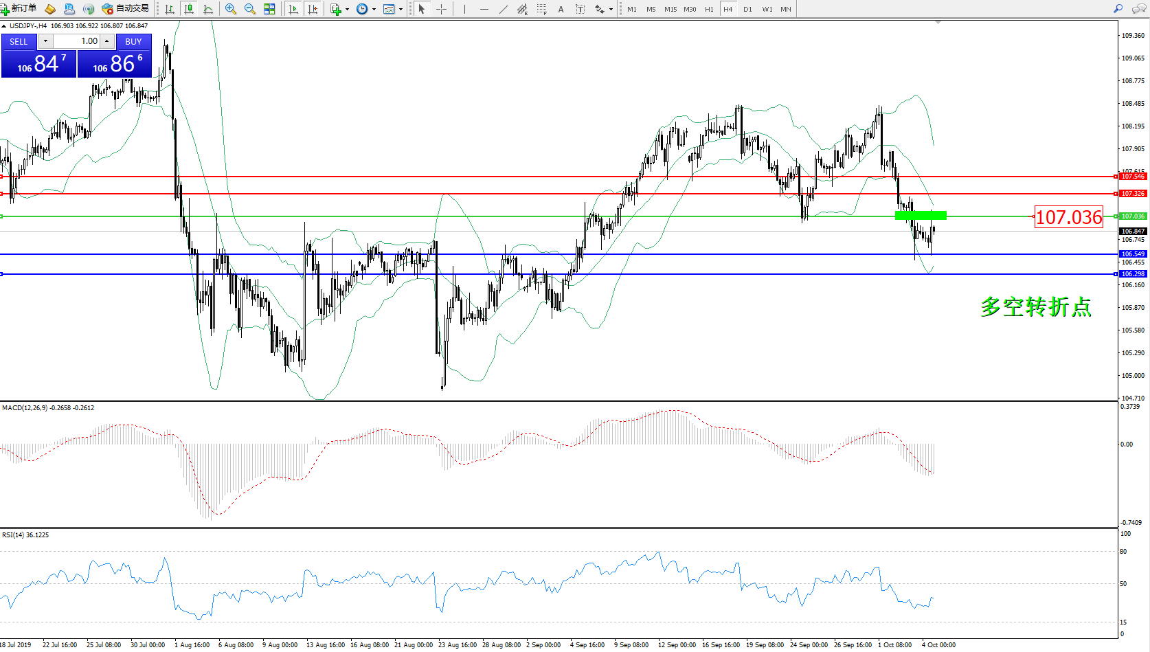 交易策略:107.036下方看跌,目标106.549106.298