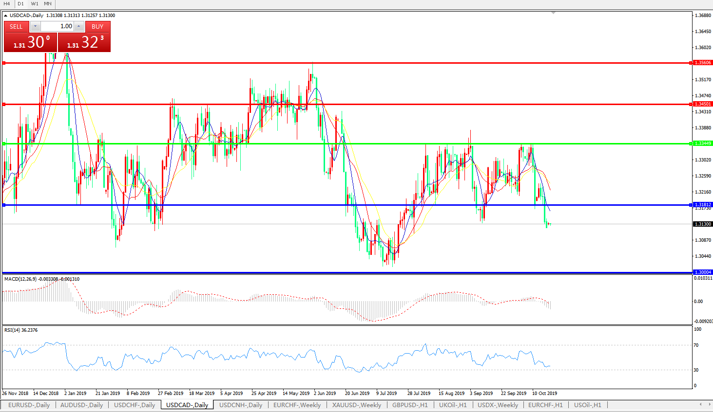 美元兑加元USDCAD 日线图: