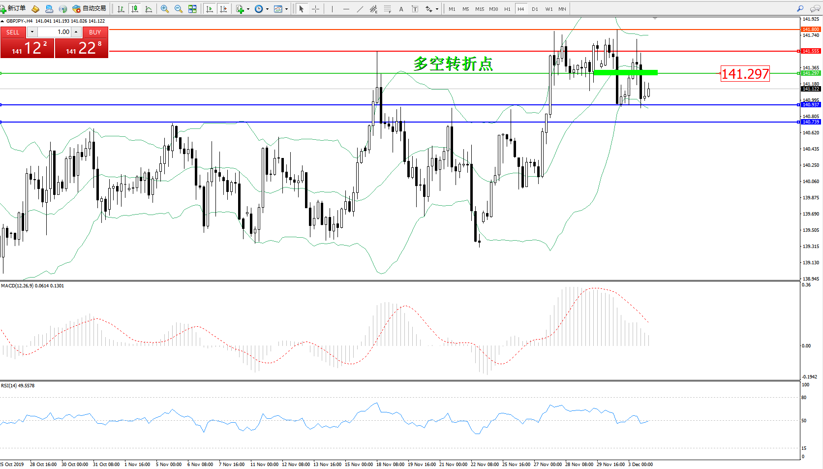 交易策略:141.297下方看跌,目标140.937140.739