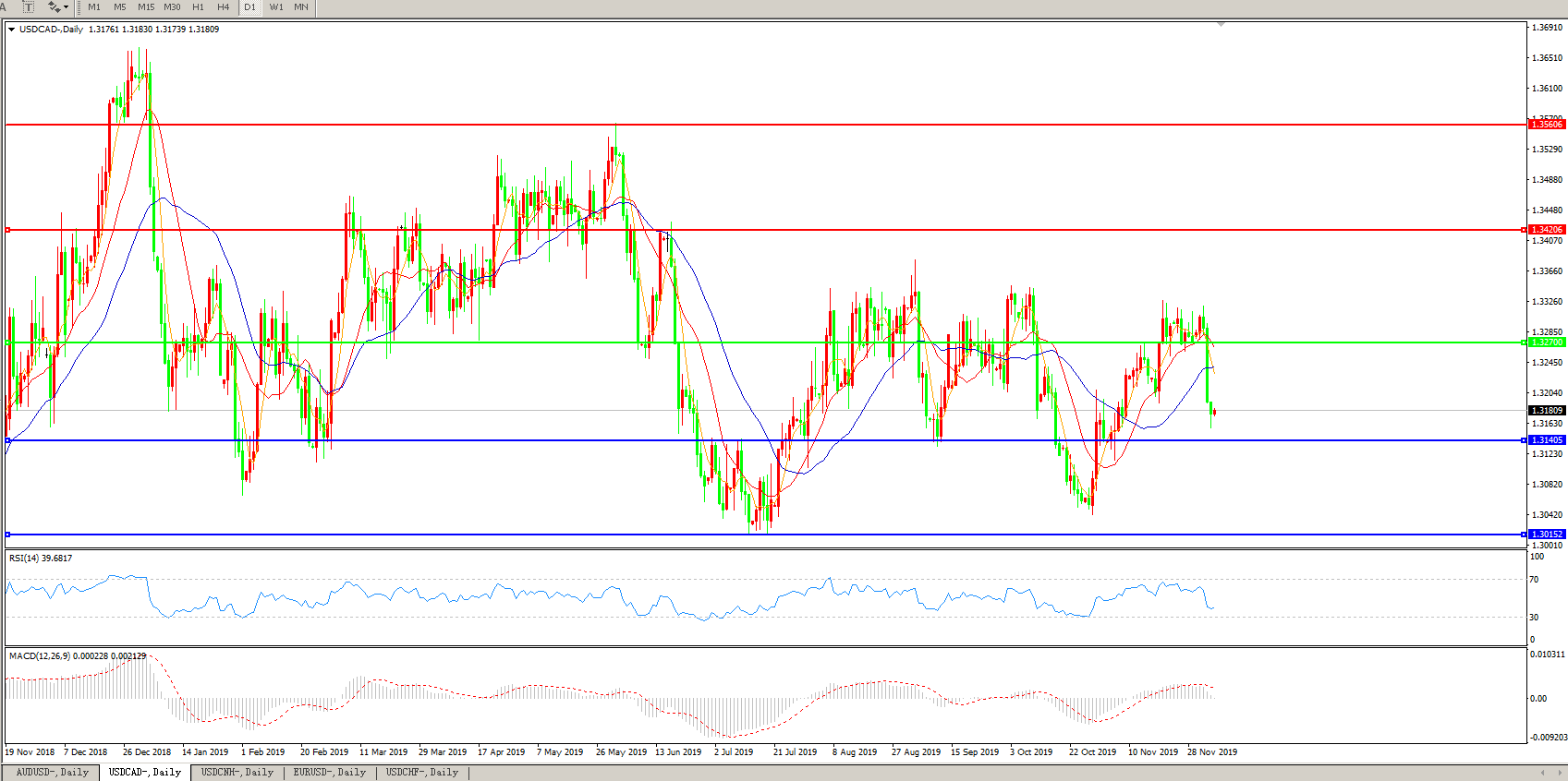 美元兑加元USDCAD 日线图: