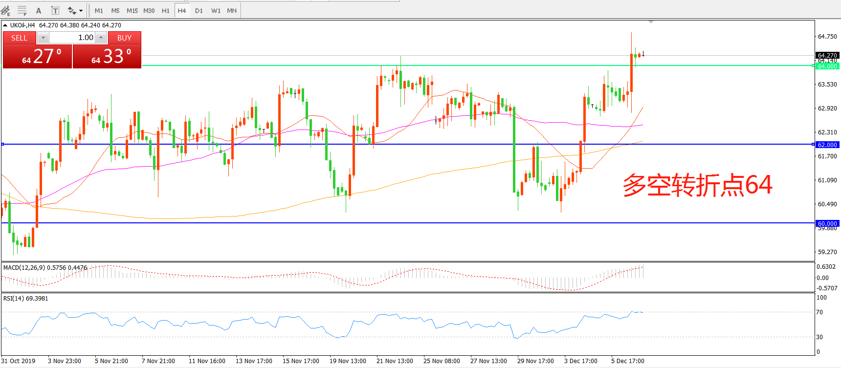 多空转折点:64.00