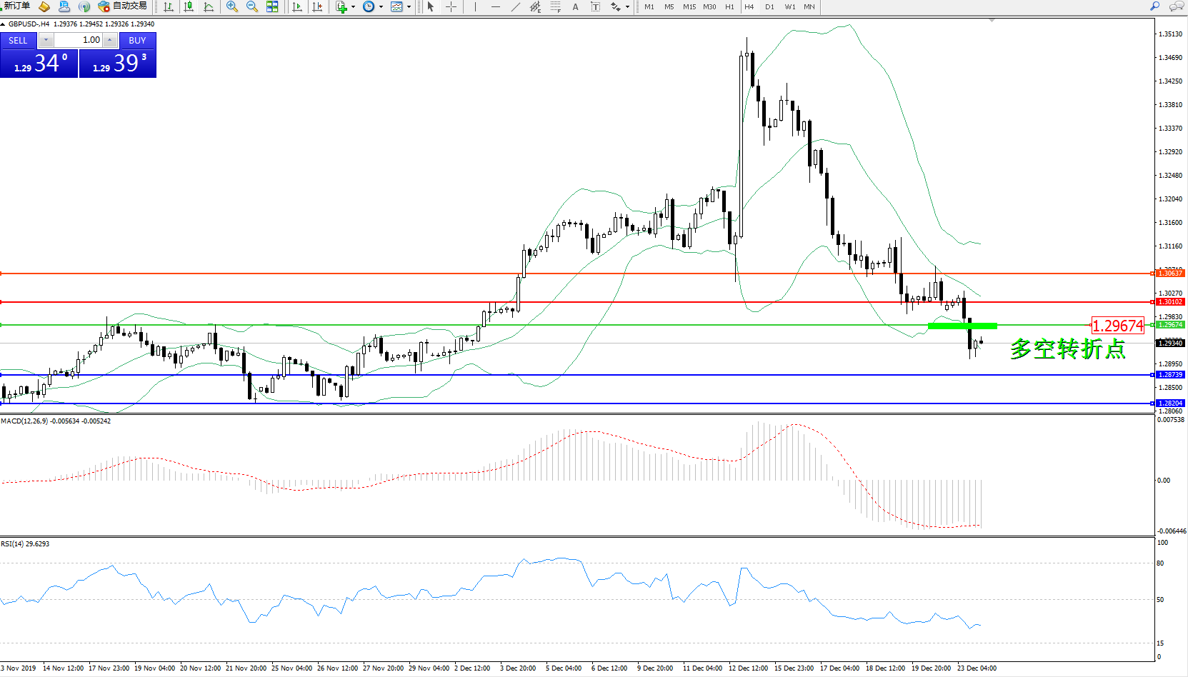 交易策略:1.29674下方看跌,目标1.287391.28204