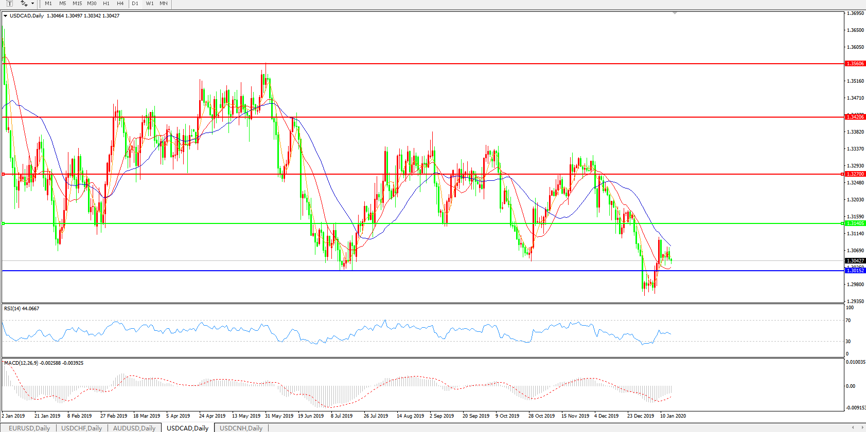 技术面简析:日线图短期均线走强乏力再度下行,汇价延续窄幅整理态势,MACD开始走升且量能收缩,RSI震荡走平,预计汇价短期大概率将延续整理态势,重点关注1.3140附近压制是否持续有效,中期下行趋势不改。