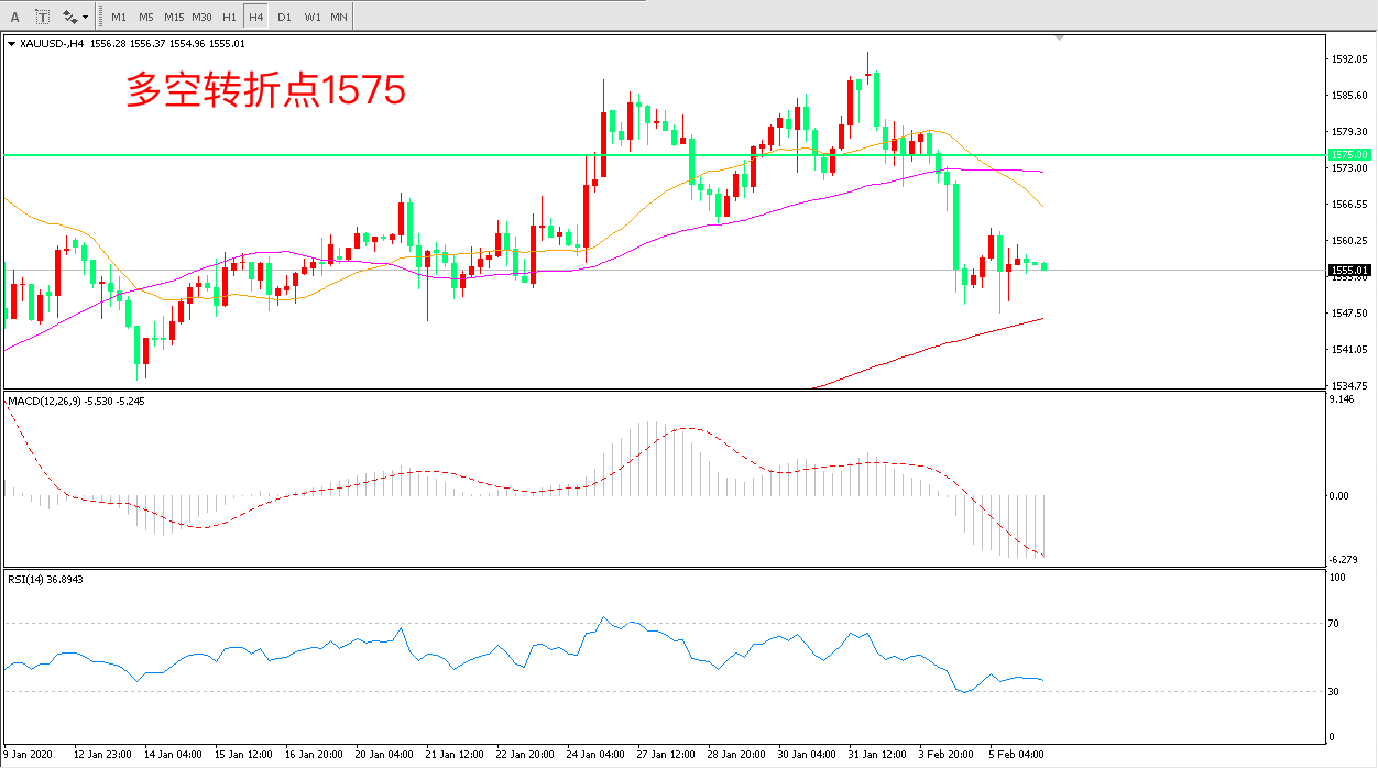 多空转折点:1575.00