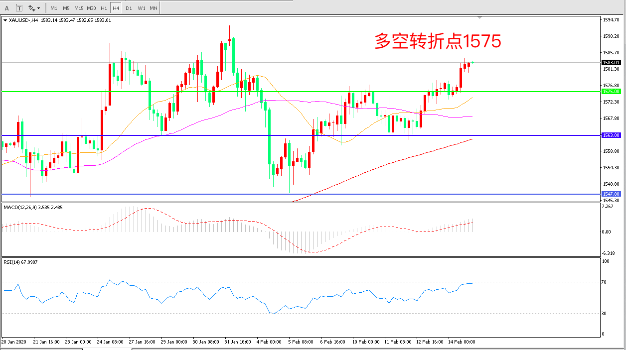多空转折点:1575.00