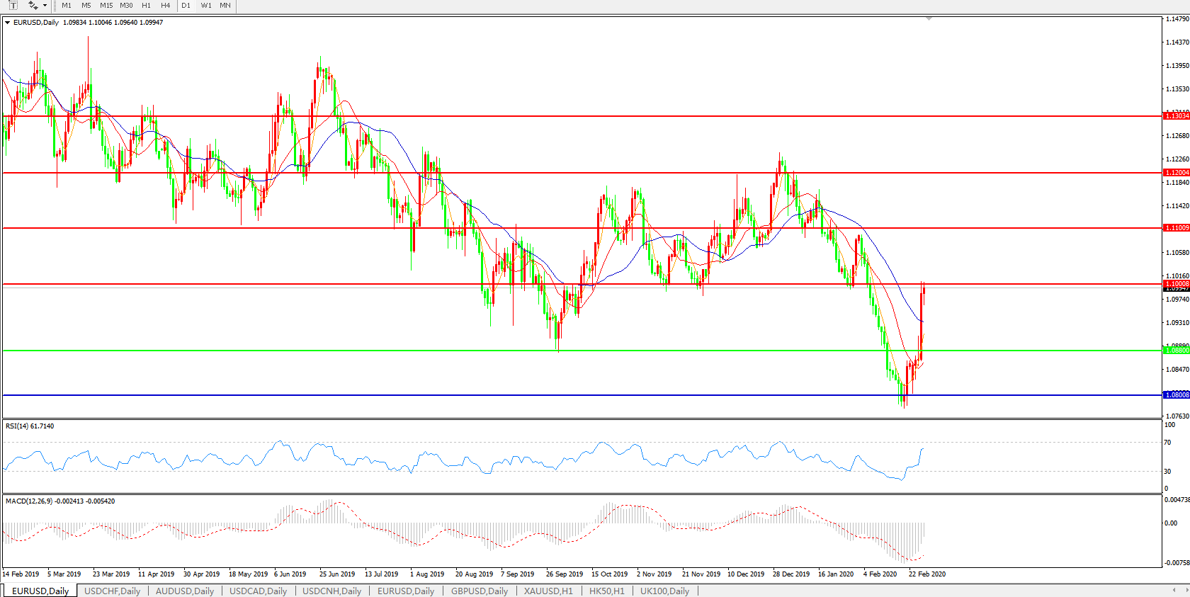 欧元兑美元EURUSD 日线图: