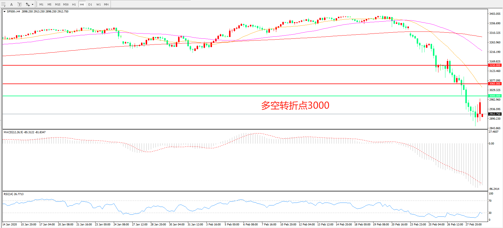 多空转折点:3000.00