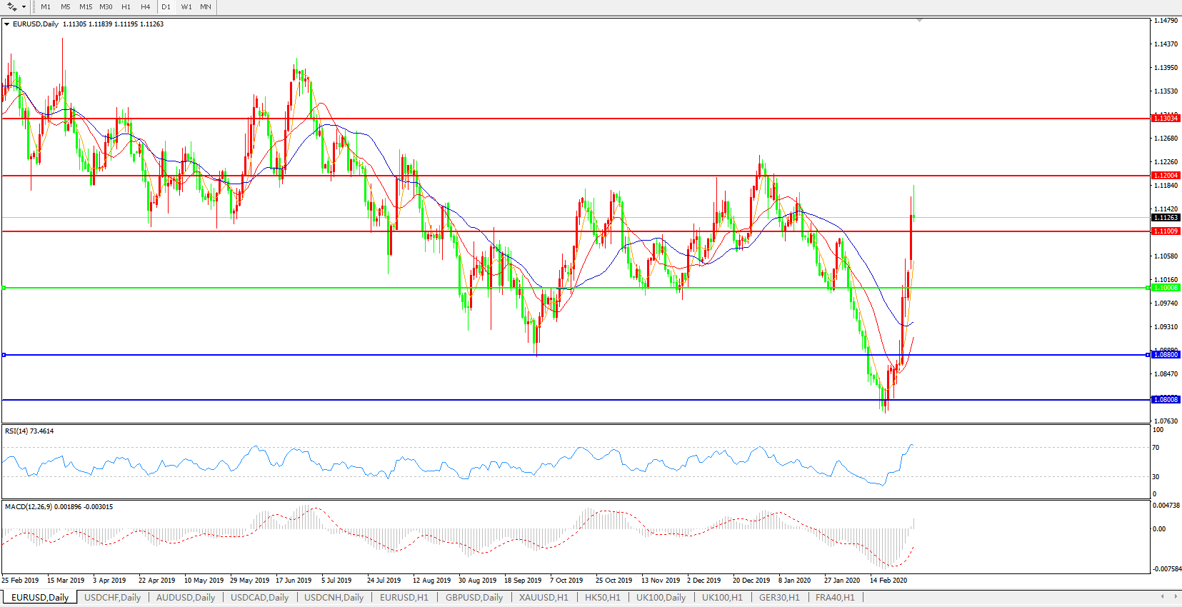 交易策略:1.1000上方看涨,目标1.1100、1.1200