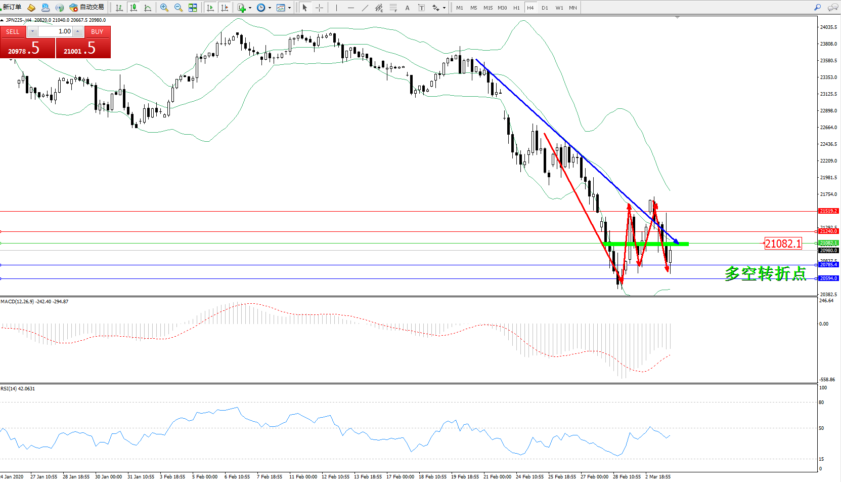 日经225指数33日(周二)收盘下跌253.08点,跌幅1.19%,报21091.00点。随着数据开始显示公共卫生事件对全球第三大经济体的影响程度,预计日本将陷入更深度的衰退。一项调查的预估中值显示,就在两周前第一季度日本GDP仅会萎缩0.25%。市场相信流动性将更为宽松,且将有财政扶持举措出台,这可能有助于在很短期内稳定市场人气,目前押注美联储将引领全球一轮货币宽松潮。但需要注意,投资者对宽松政策的规模、以及应对公共卫生事件带来的经济损失是否有效持怀疑立场。