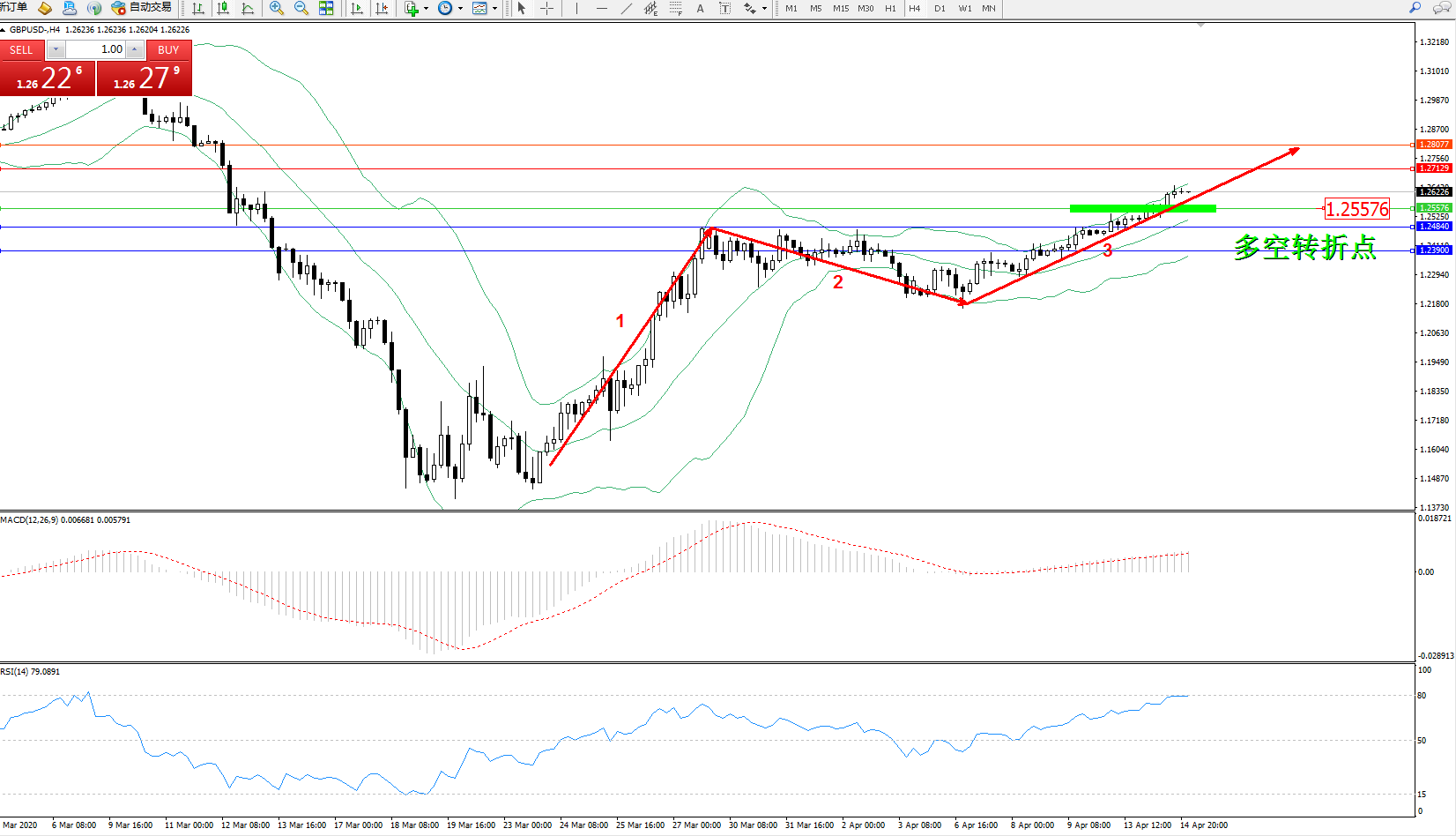 交易策略:1.25576上方看涨,目标1.271291.28077