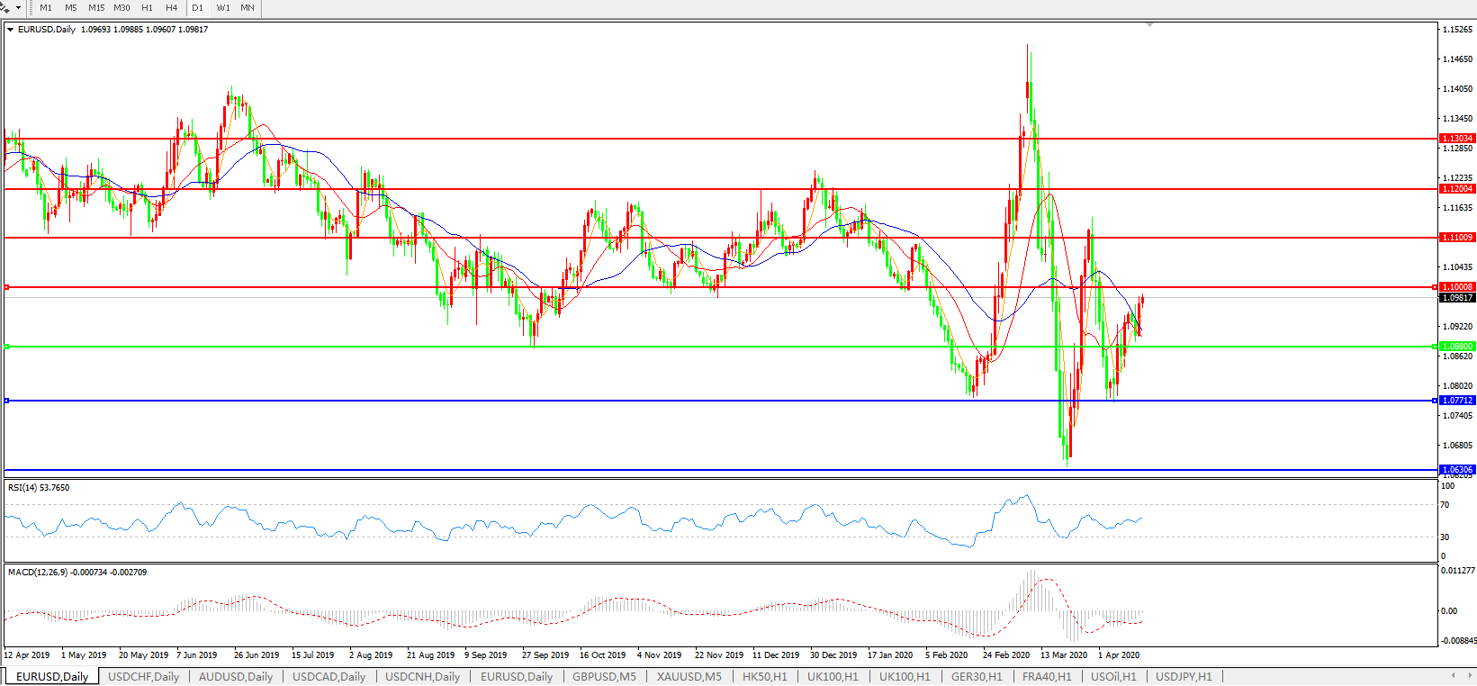 欧元兑美元EURUSD   日线图:
