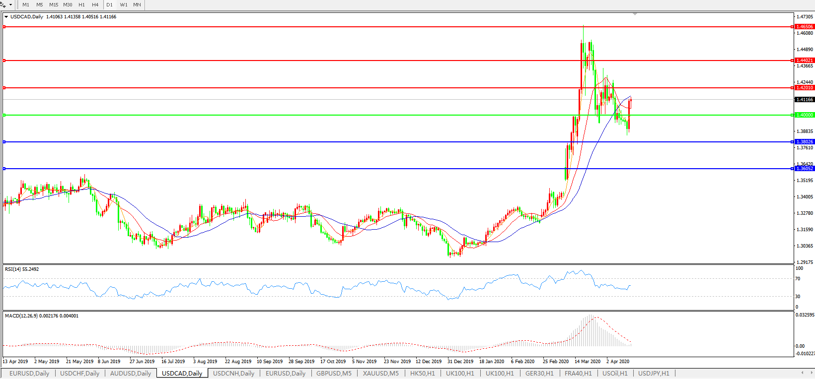 美元兑加元USDCAD 日线图: