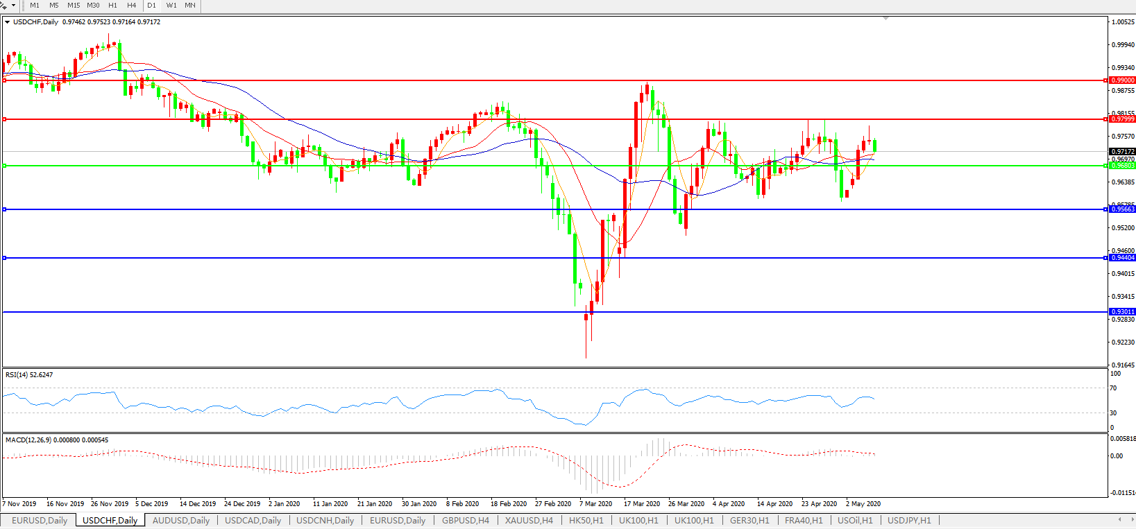 交易策略:0.9680上方看涨,目标0.9800、0.9900