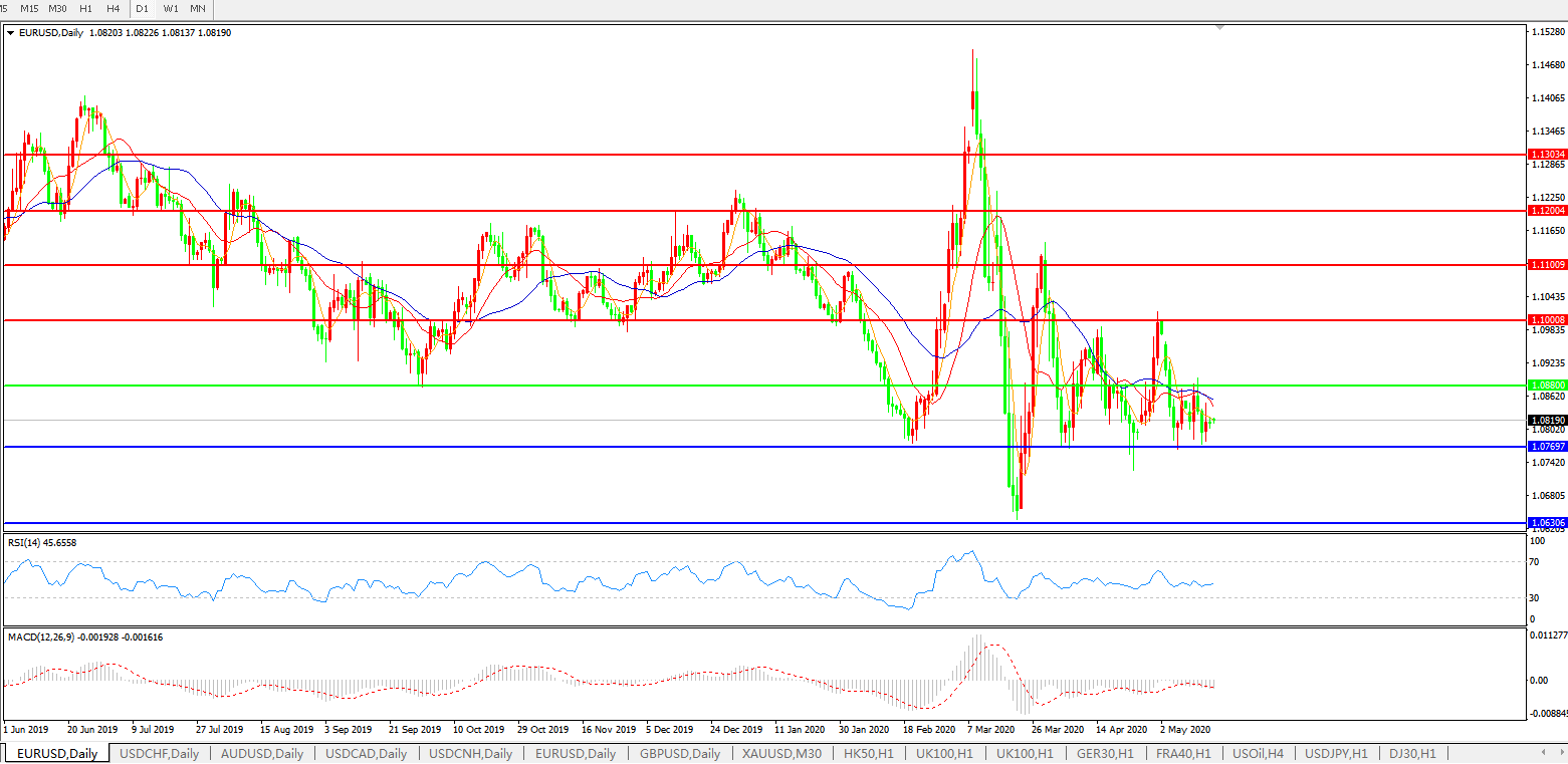 交易策略:1.0880下方看跌,目标1.0770、1.0630