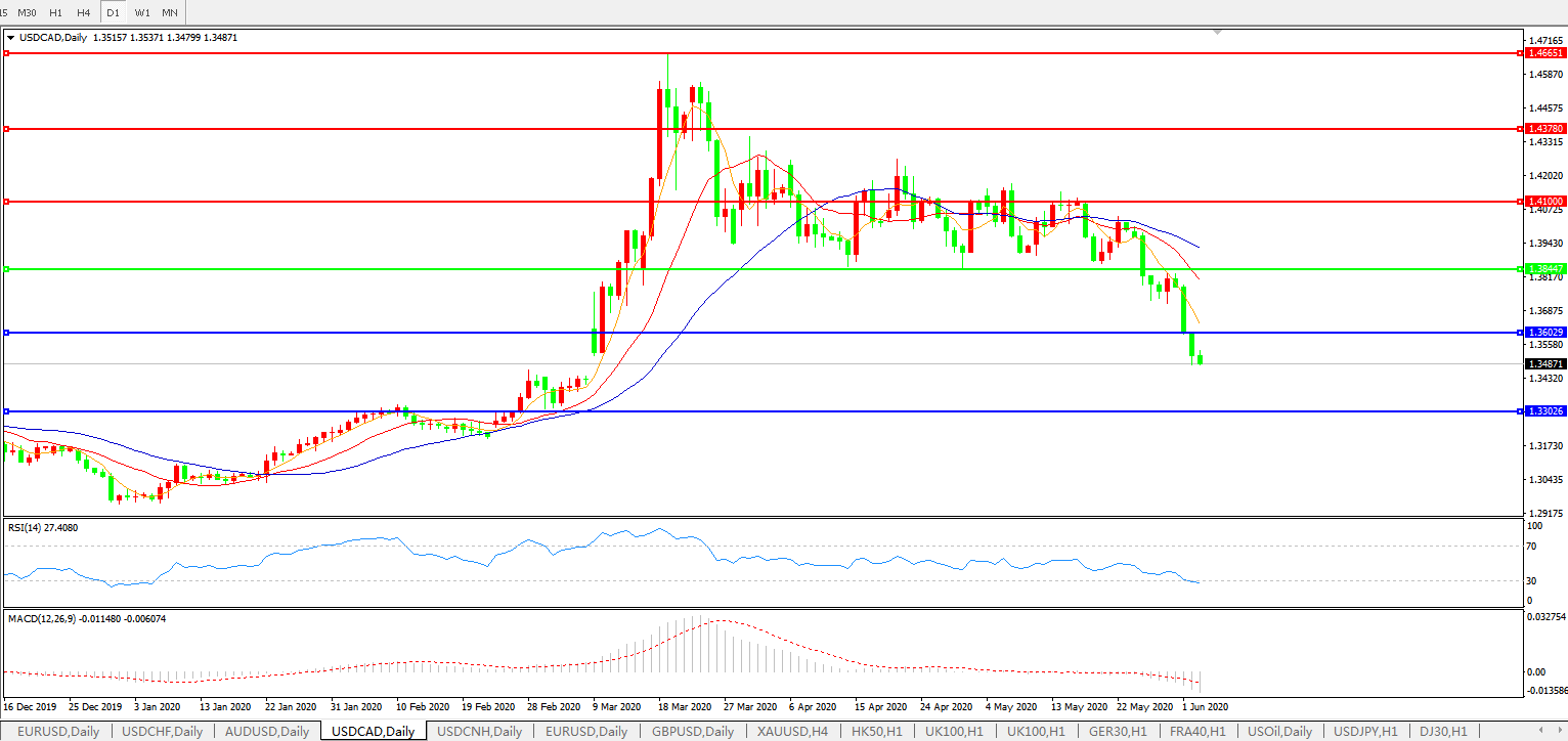 美元兑加元USDCAD 日线图: