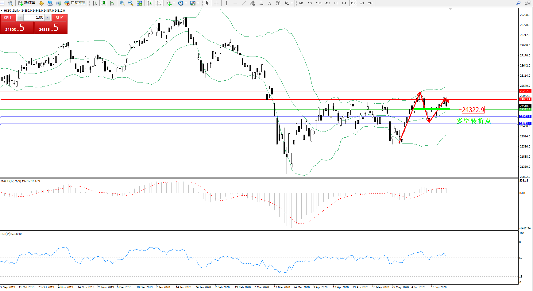 恒指HK50 ——日K线图显示: