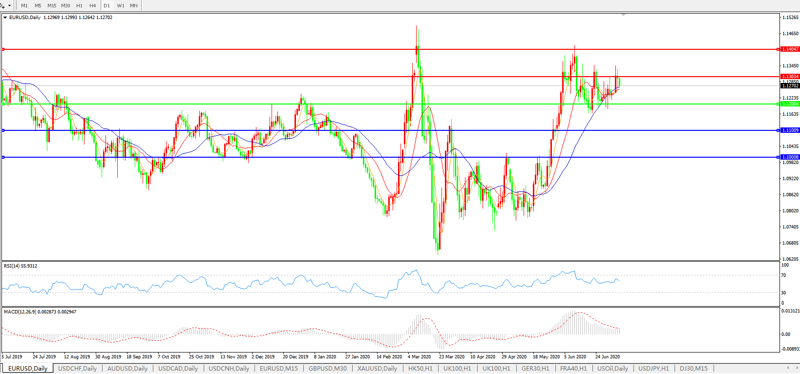 交易策略:1.1200上方看涨,目标1.1300、1.1400