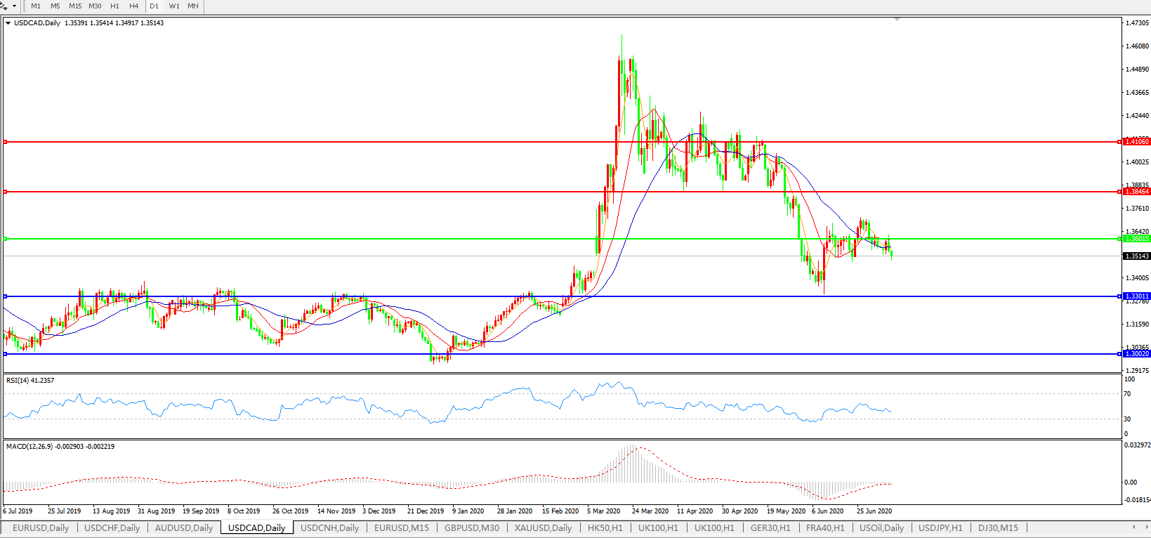 美元兑加元USDCAD    日线图: