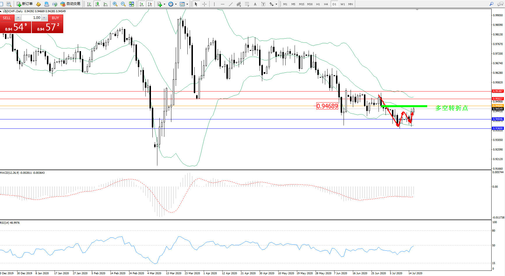 交易策略:0.94689下方看跌,目标0.94046、0.93600