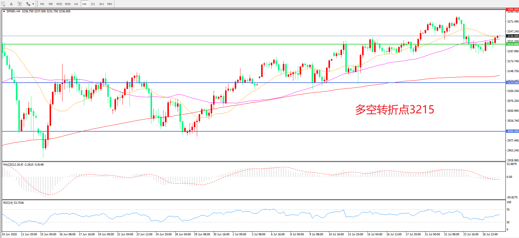 多空转折点:3215.00