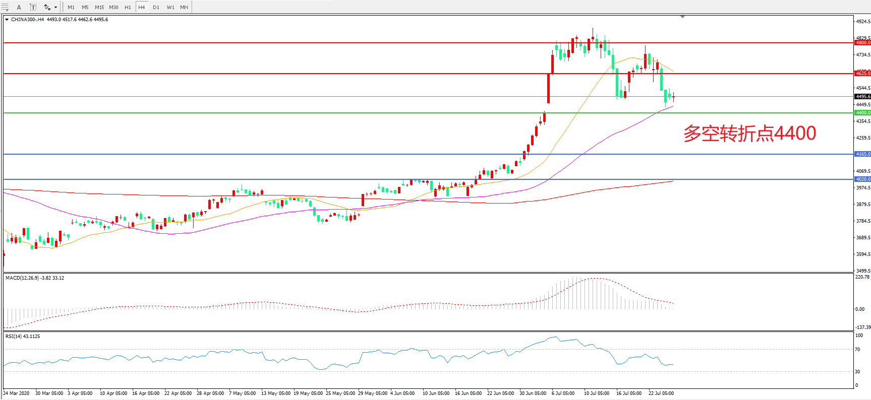 备选策略:在4400.00之下看跌,目标4165.00 4020.00