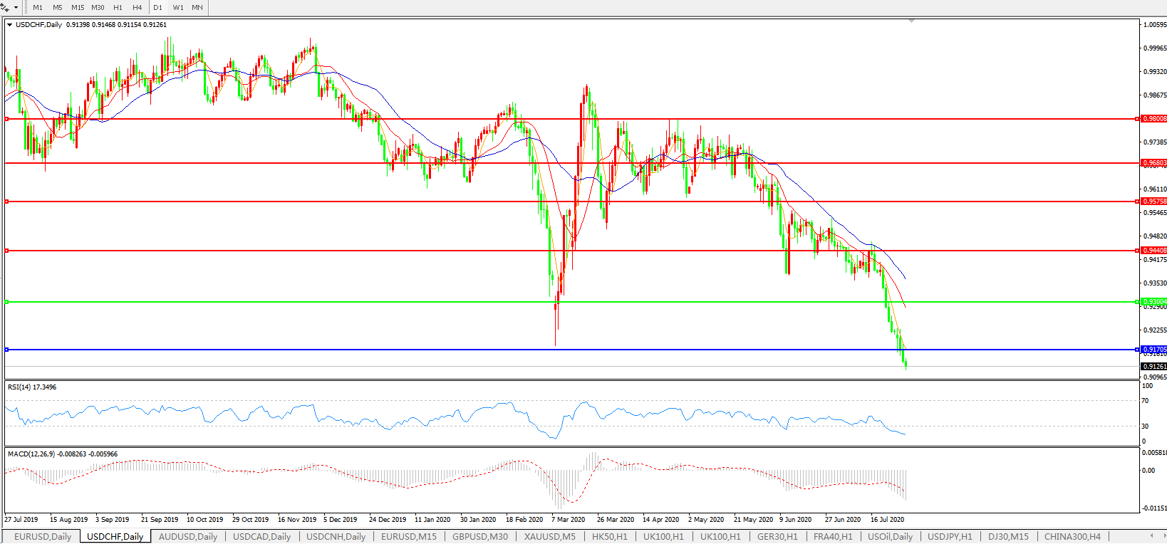 美元兑瑞郎USDCHF    日线图: